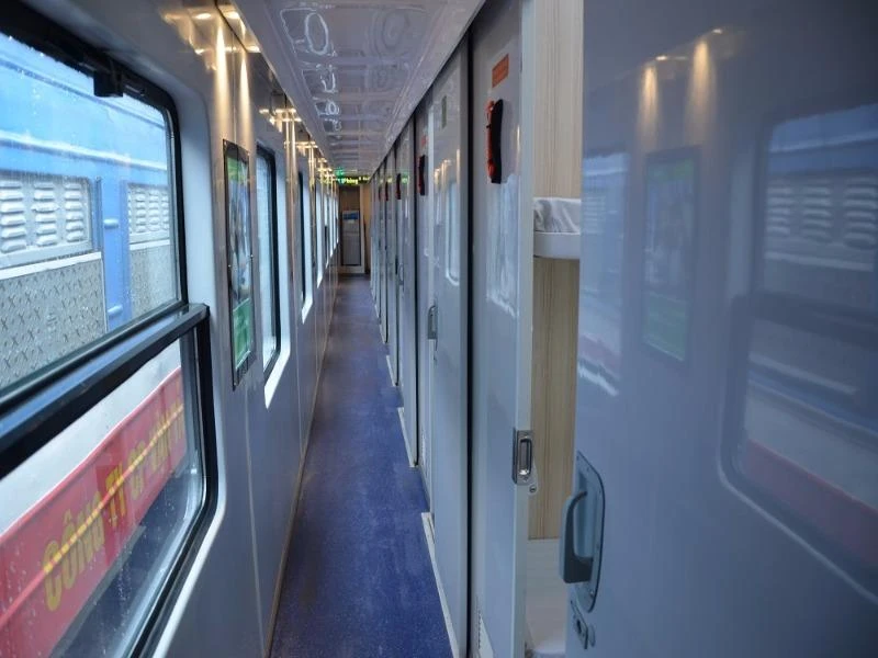 Bên trong toa xe ngồi mềm được thiết kế đẹp và tiện lợi cho hành khách.