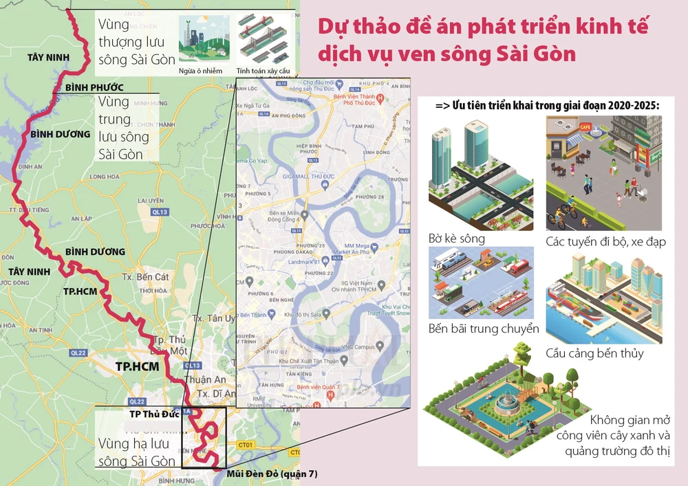 Dự thảo đề án của Sở QH-KT TP.HCM để khai thác tốt hơn sông Sài Gòn. Đồ họa: THÙY TRANG
