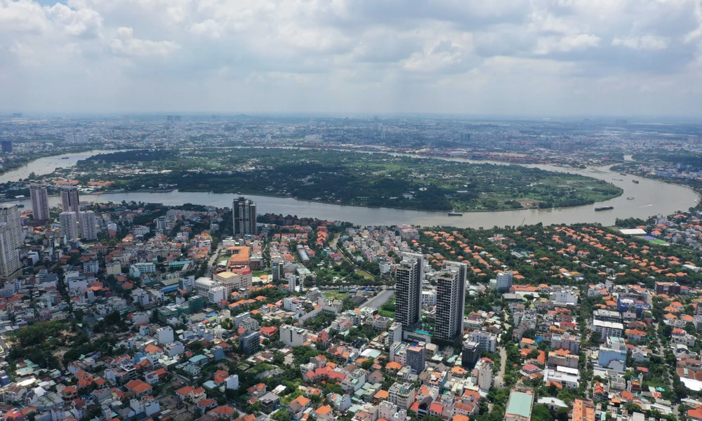 Toàn cảnh khu Thảo Điền, đối lập với khu bán đảo Thanh Đa chưa được khai thác nhiều năm qua.