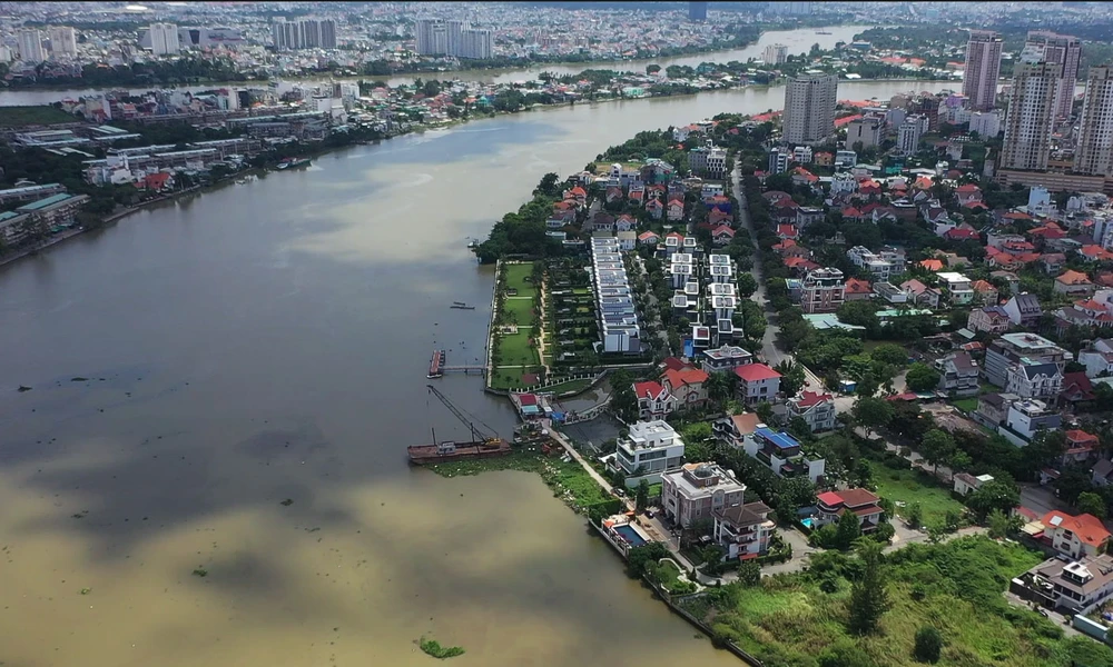 Trong đó, đáng chú ý là khu biệt thự ở Thảo Điền (TP Thủ Đức), bờ sông ở đây được tận dụng view sông cho những khu căn hộ, biệt thự.