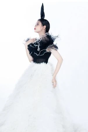 Với bộ trang phục đen - hồng nữ diễn viên Trương Quỳnh Anh xinh đẹp tựa nữ thần ngày Quốc tế Phụ nữ 8-3.