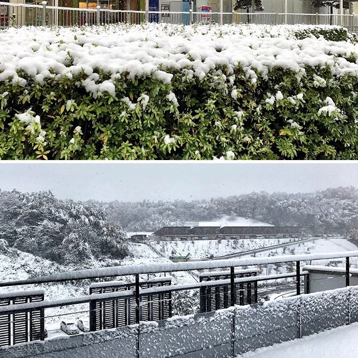 Một người Nhật đang dừng xe để chụp lại khoảnh khắc tuyết rơi đẹp.