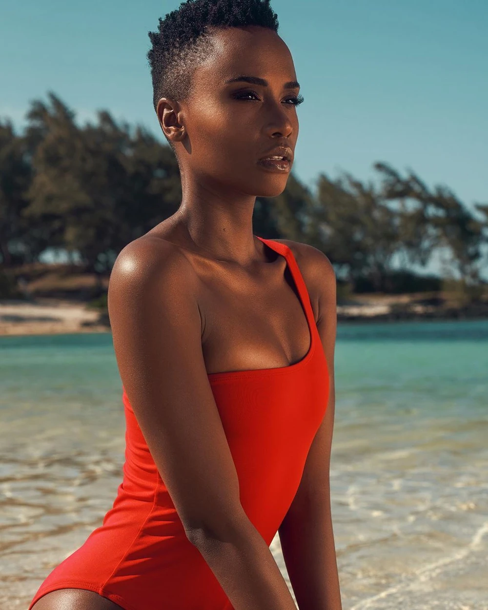 Zozibini Tunzi sinh năm 1993 sở hữu làn da nâu bóng giòn rất quyến rũ.