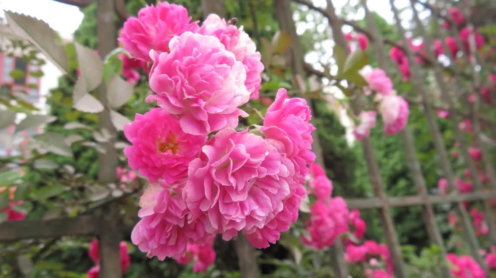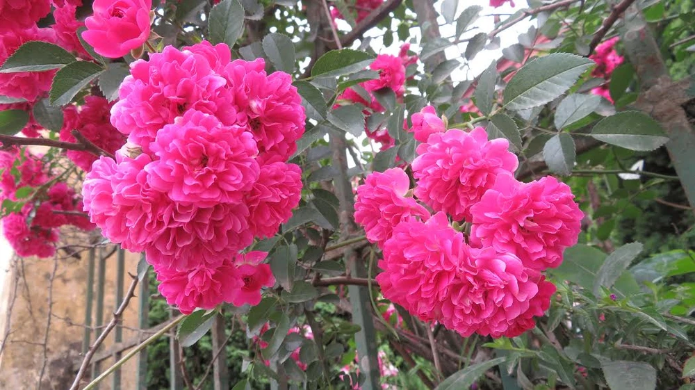 Trải qua mùa thu ướt át, mùa đông lạnh giá. Những chồi hồng leo bung lộc vào mùa xuân và khoe sắc rực rỡ dưới ánh mặt trời khi hè tới.
