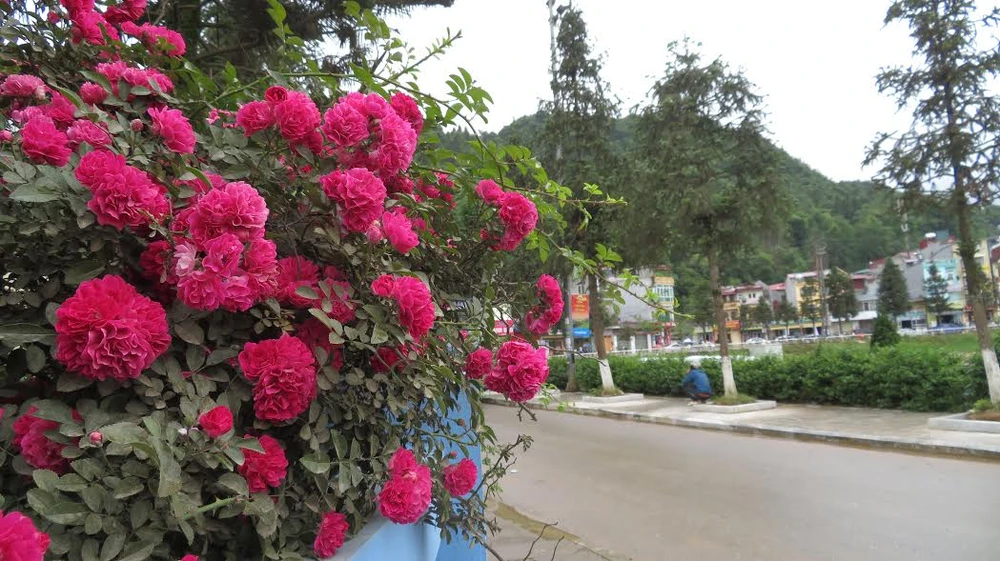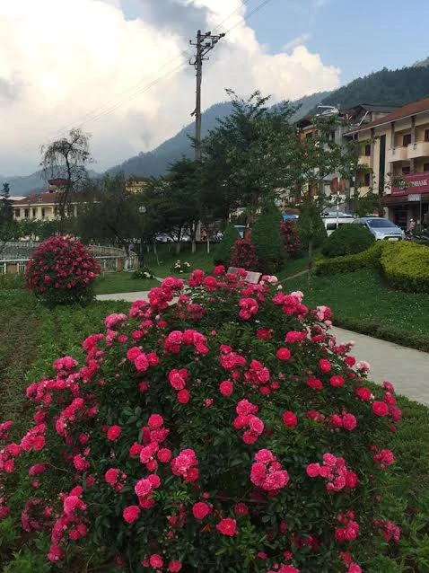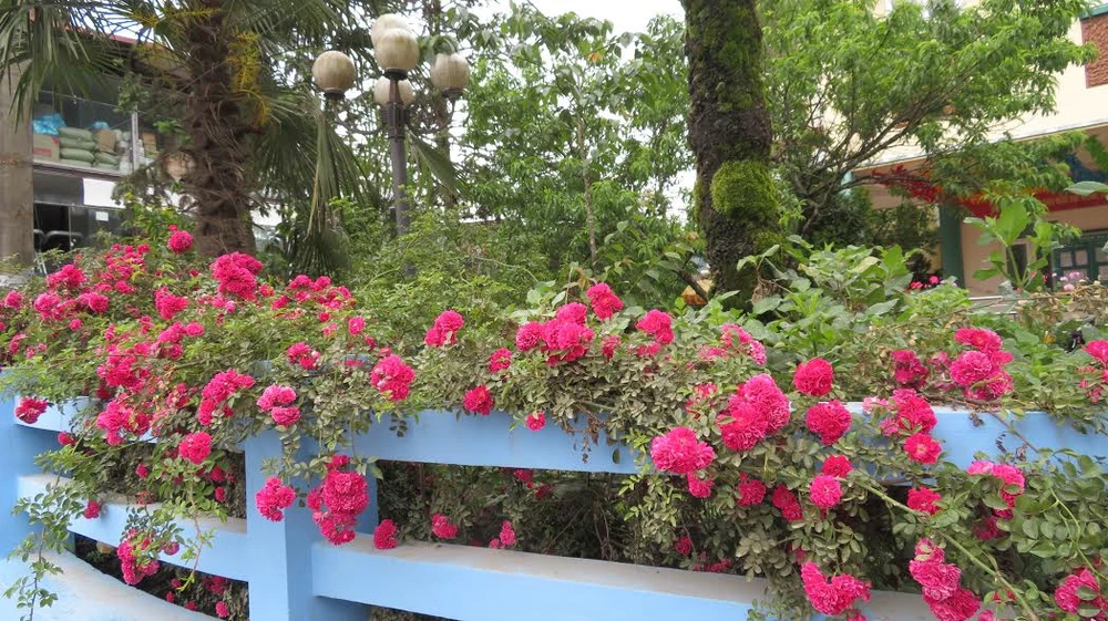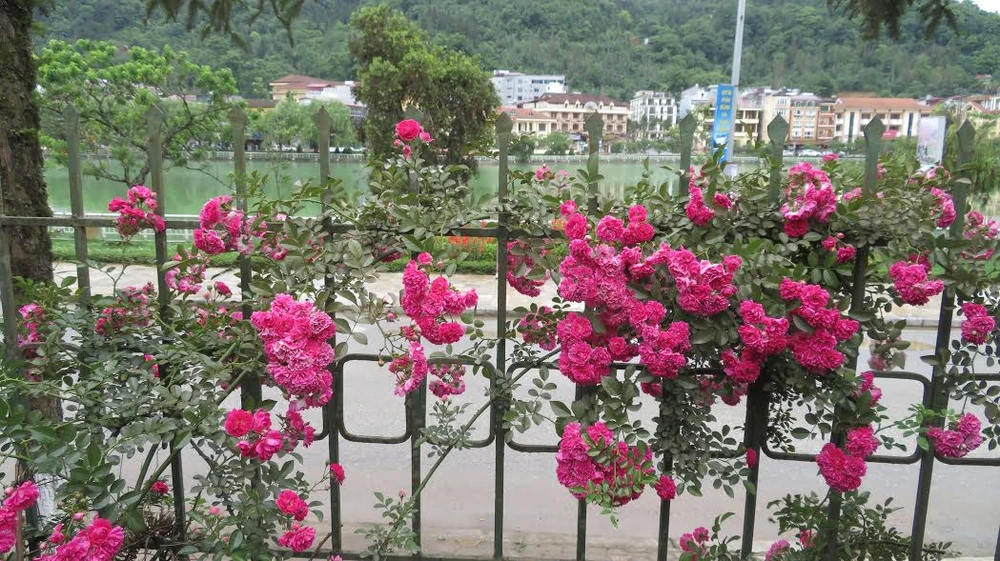 Ở Sa Pa mùa này, bất cứ đâu du khách cũng có thể thấy hồng leo. Hồng leo trên khung cửa sổ, cánh cổng, trên hàng rào...