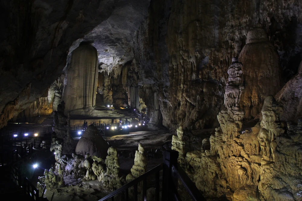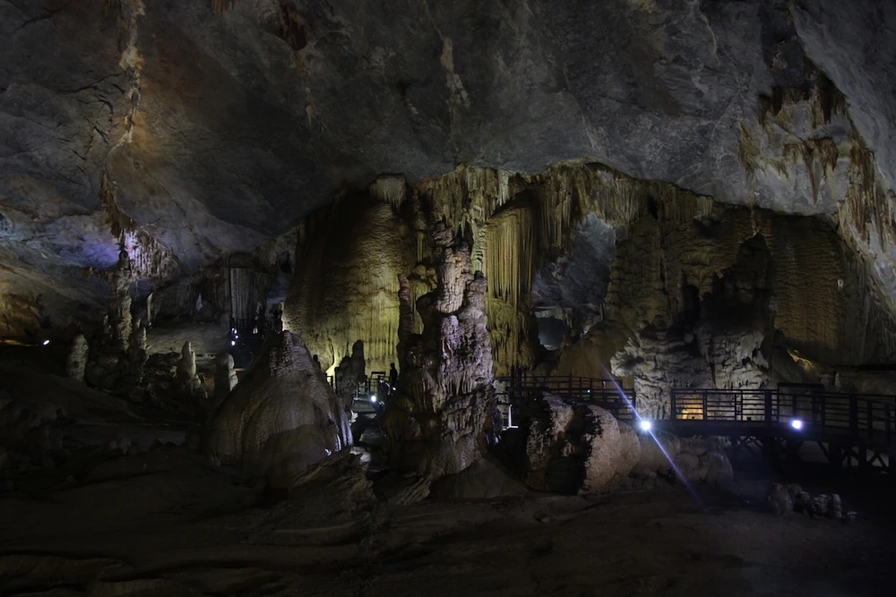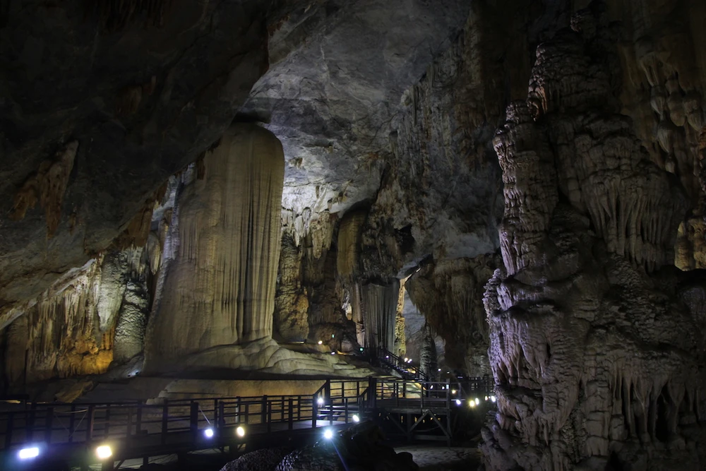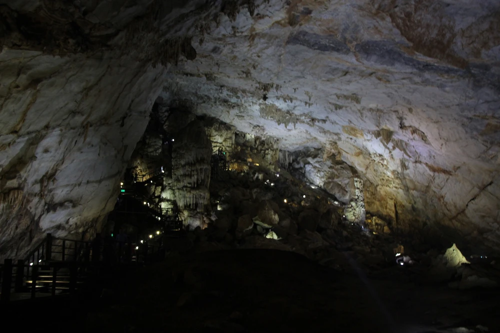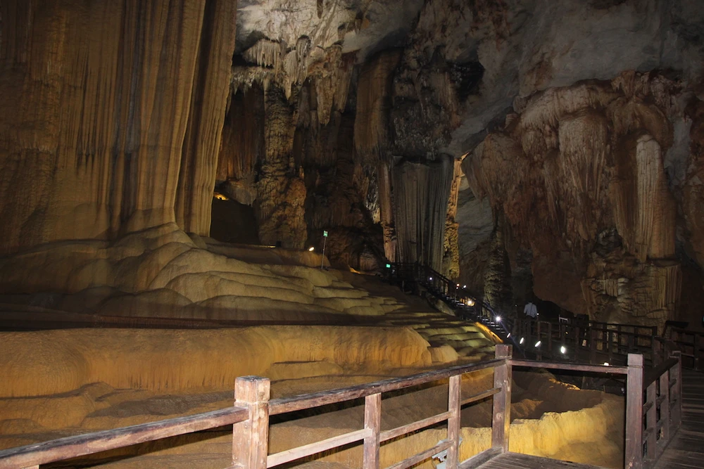Các thạch nhũ có khi cao 20-30 m. Tuy nhiên, cũng có lúc chỉ cao 3-5 m. Ngoài chiều dài hơn 31 km, nhiều nơi trong lòng động rộng tới cả 100 m và cao 60-70 m. Ảnh: LÊ PHI