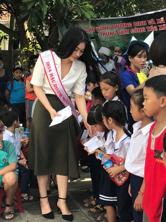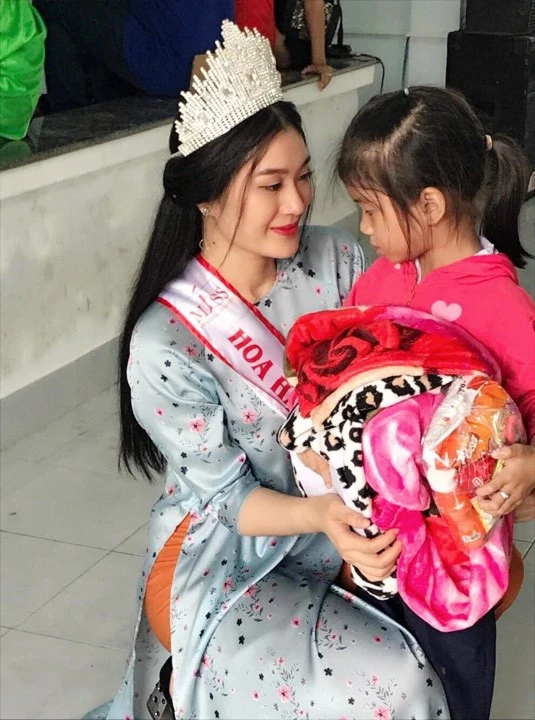 Hình ảnh hoa hậu Vũ Bình Minh trong chuyến thiện nguyện: