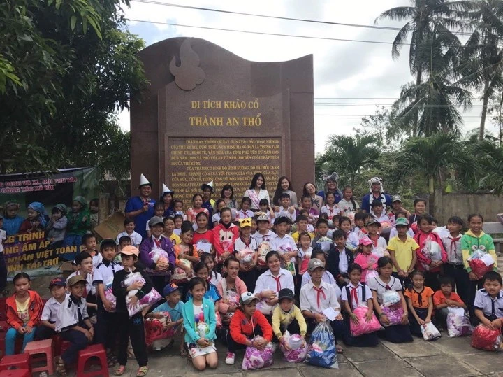 Chụp ảnh lưu niệm cùng trẻ em quê nhà.