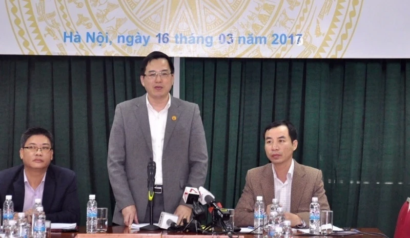 Ông Đặng Quyết Tiến, Phó cục trưởng Cục Tài chính DN trả lời báo chí tại buổi họp báo. Ảnh: Trà Phương