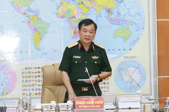 Thượng tướng Hoàng Xuân Chiến phát biểu tại cuộc họp. Ảnh: MOD