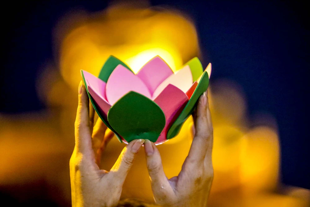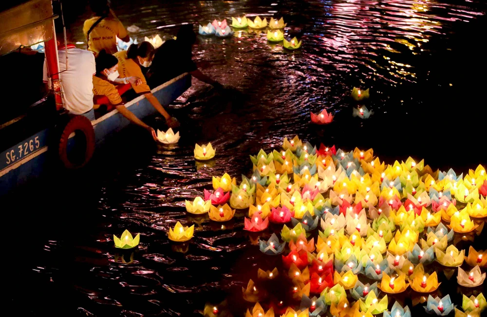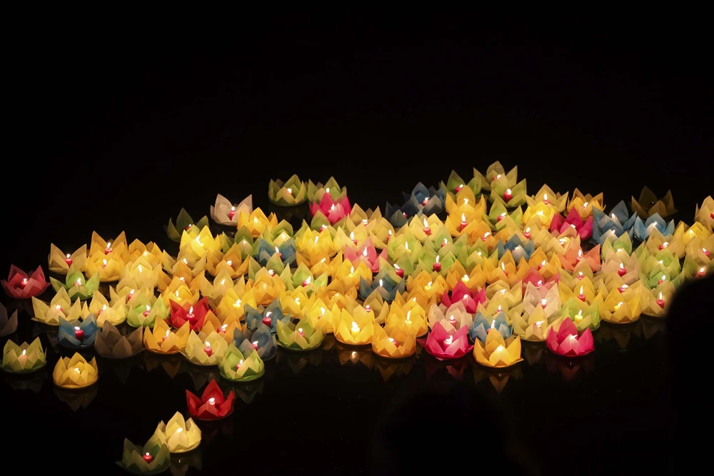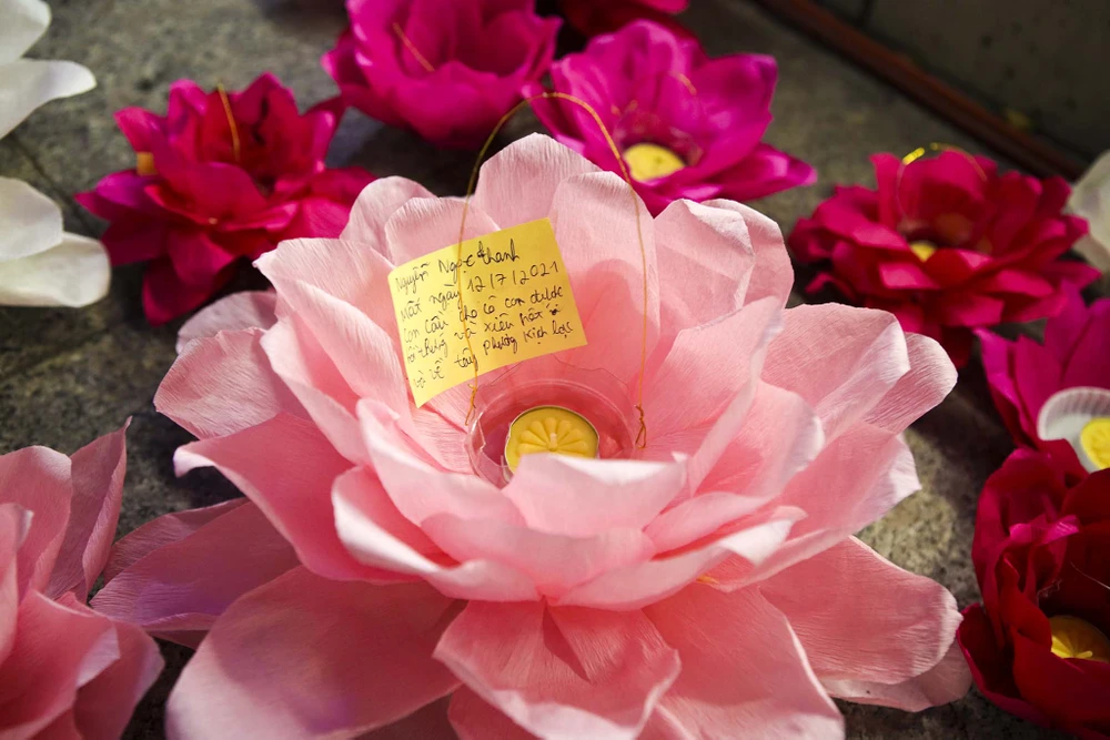 Những đóa hoa đăng được thắp sáng mang vô vàn niềm tiếc thương, mong người mất được thanh thản, bình an. Nhiều người còn viết lời nhắn lên hoa đăng, gửi đến những người thân đã qua đời vì dịch bệnh.
