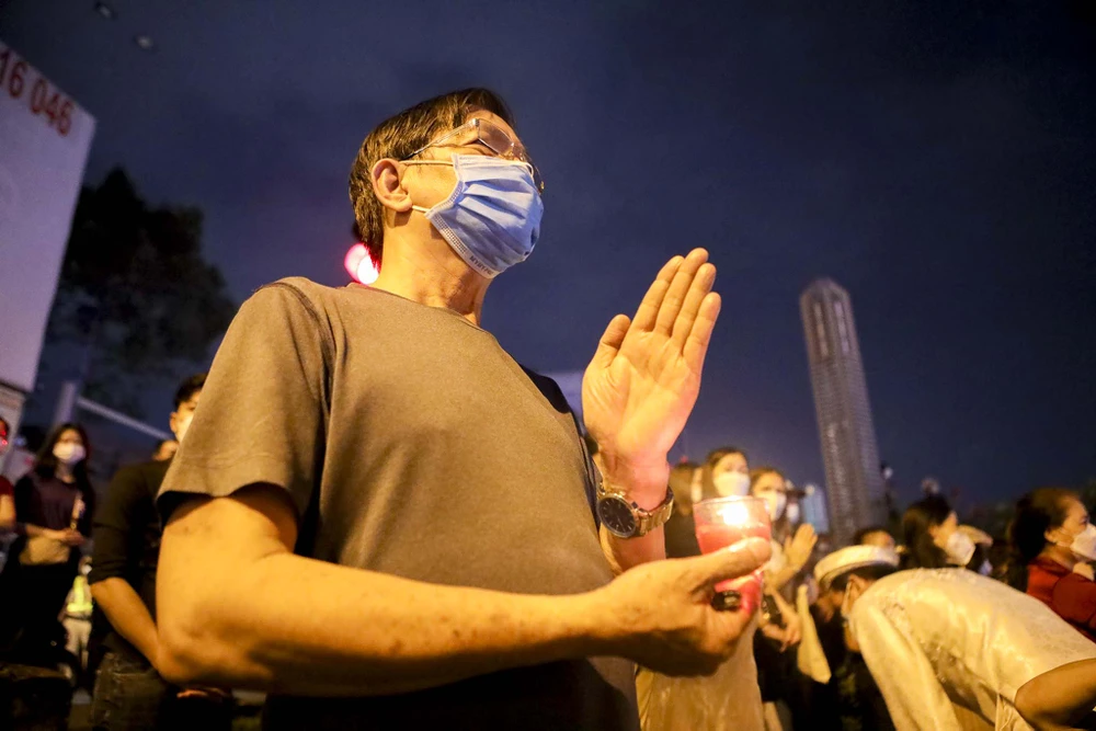 Tối ngày 19-11, người dân tại nhiều nơi đã đồng loạt tắt đèn, thắp nến và thả hoa đăng để tưởng niệm đồng bào đã mất vì đại dịch COVID-19. Tại chùa Pháp Hoa, nhiều người dân có mặt từ sớm để cầu nguyện cho người thân đã qua đời.