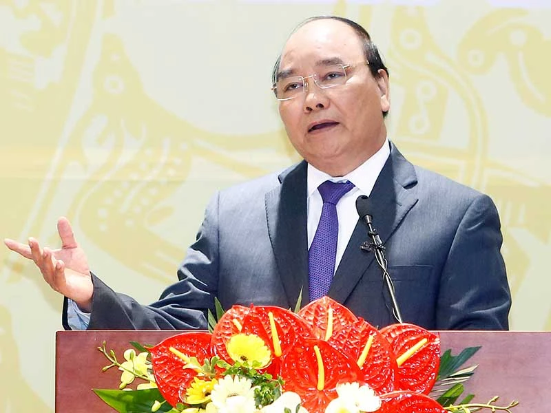 Thủ tướng Nguyễn Xuân Phúc: “Ngành ngân hàng phải phấn đấu quyết liệt giảm mặt bằng lãi suất”. Ảnh: TTXVN