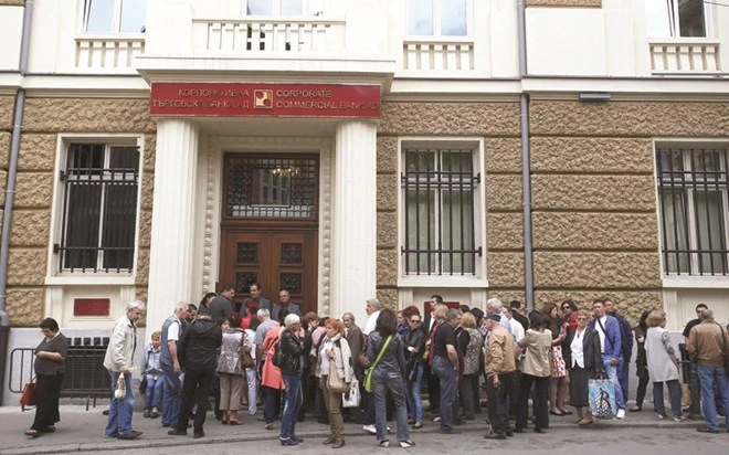 Khách hàng của Corpbank bên ngoài trụ sở ngân hàng này ở Sofia. Ảnh: Economica