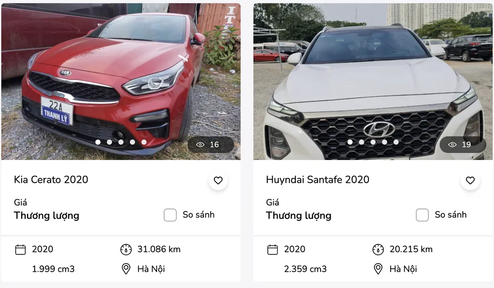 Bên cạnh đó, ngân hàng này cũng rao bán nhiều mẫu xe chỉ mới chạy khoảng 5.700 km và một số mẫu có đời sản xuất rất mới từ 2019-2020. Tuy nhiên, đa số các mẫu xe này không công bố giá công khai trên website của ngân hàng, thay vào đó người mua xe thanh lý có thể liên hệ để thương lượng về giá cả.