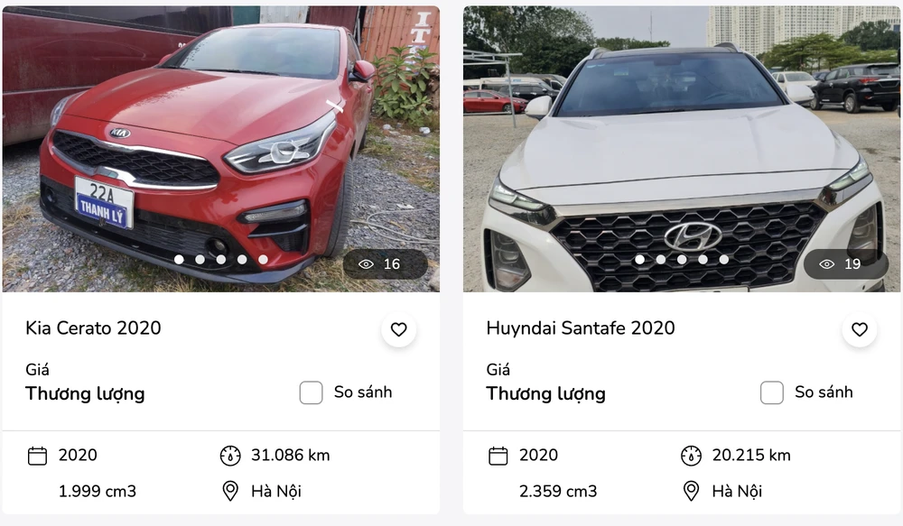Nhiều mẫu xe mới từ năm 2020 nhưng cũng được ngân hàng rao thanh lý. (Ảnh chụp từ website ngân hàng)