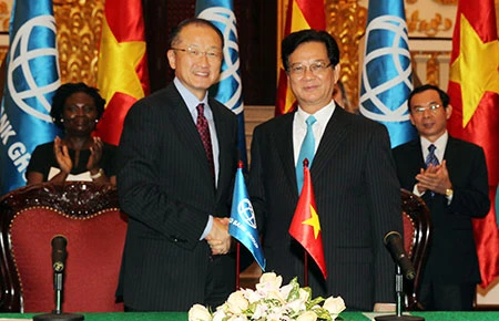 Dưới sự chứng kiến của Thủ tướng Nguyễn Tấn Dũng, Chủ tịch WB Jim Yong Kim và Thống đốc Ngân hàng Nhà nước Việt Nam Nguyễn Văn Bình đã ký hiệp định vay vốn ưu đãi cho năm chương trình, dự án với tổng trị giá là 876 triệu USD. Nguồn vốn này sẽ tài trợ cho các chương trình, dự án có đối tượng hưởng lợi là người dân và các doanh nghiệp ở hầu hết địa phương trên lãnh thổ Việt Nam. Đây là các dự án về hoàn thiện khuôn khổ pháp lý để nâng cao tính cạnh tranh của nền kinh tế; đầu tư vào các lĩnh vực năng lượng điện; phát triển đô thị; tăng cường năng lực nguồn nhân lực ngành y tế; và phòng chống biến đổi khí hậu.
