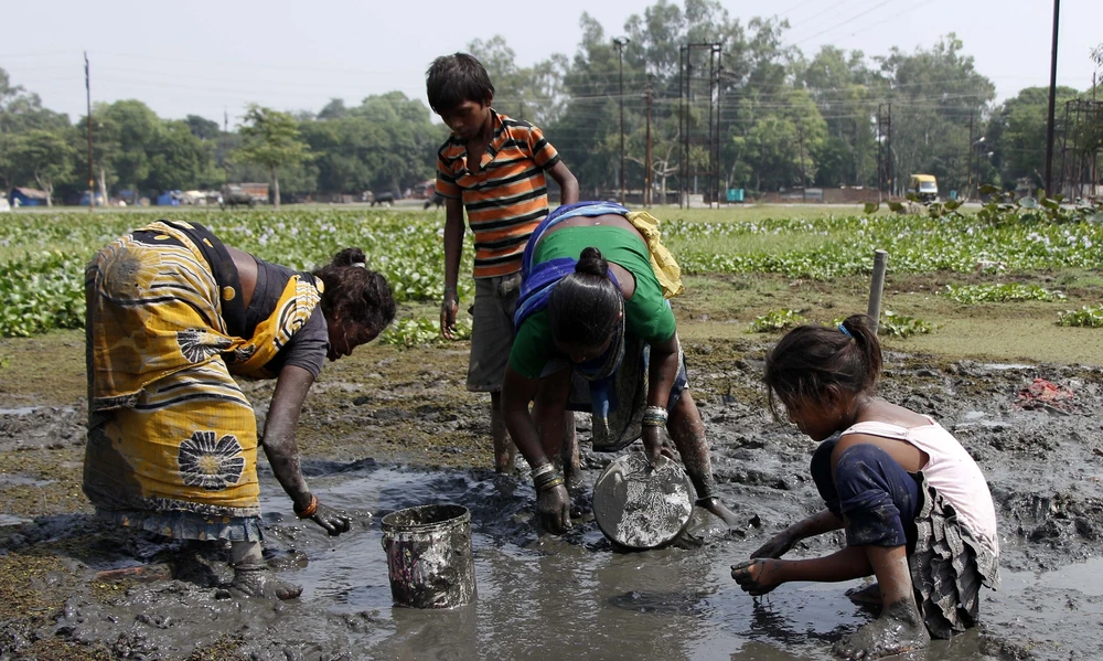 Người nghèo Ấn Độ bắt cá tại một khu ổ chuột. Ảnh: THE GUARDIAN