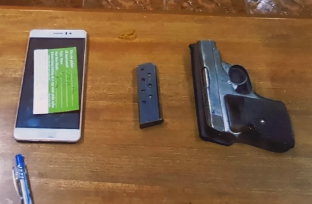 Khẩu súng và 7 viên đạn công an thu giữ được. Ảnh Công an cung cấp