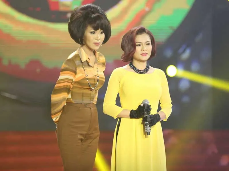MC Trác Thúy Miêu và ca sĩ Vi Thảo trong chương trình Tình Bolero hoan ca.Ảnh: Khang Media