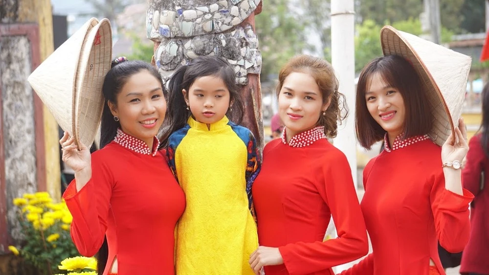 Trang phục áo dài của những cô gái người Kinh cũng khiến người đối diện xao xuyến.