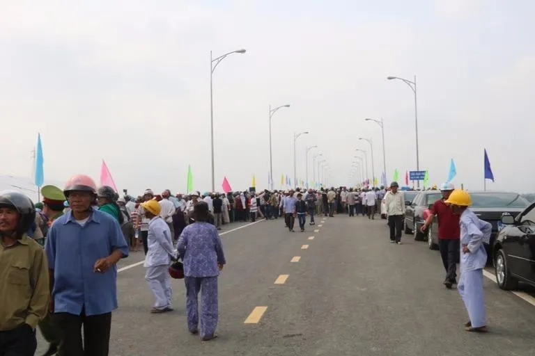 Theo ghi nhận, nhiều người dân đến từ rất sớm để chiêm ngưỡng cây cầu mới có tên Giao Thủy.