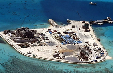 Trung Quốc bất chấp luật pháp quốc tế, cải tạo các thực thể chiếm đóng trái phép ở Trường Sa. Ảnh: EPA