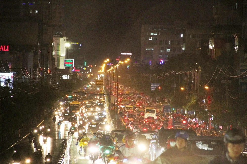 Hàng ngàn phương tiện ùn ứ, kẹt cứng trên đường Hồng Hà.