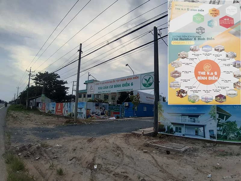 Khu đất được giới thiệu là dự án KDC Bình Điền 6 cập QL1A. Ảnh: HẢI DƯƠNG