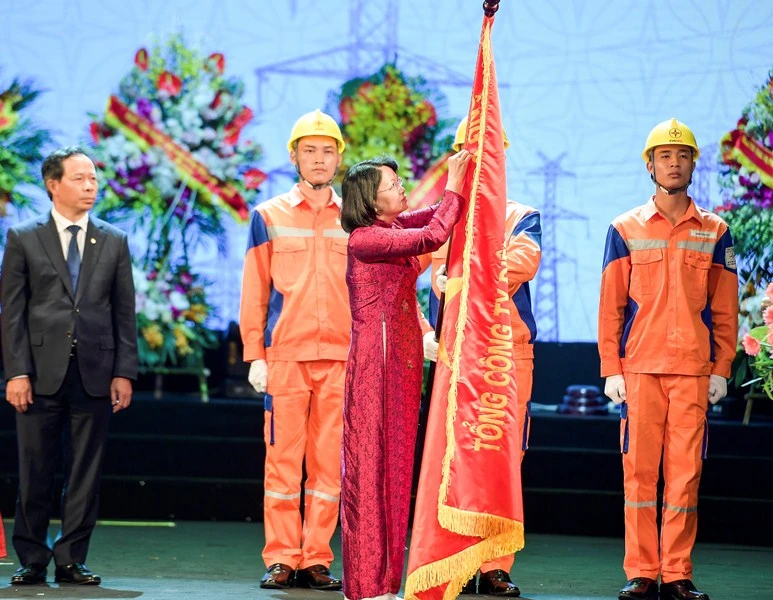 Phó Chủ tịch nước Đặng Thị Ngọc Thịnh đã gắn huân chương Lao động hạng Nhì cho tập thể EVNNPC.