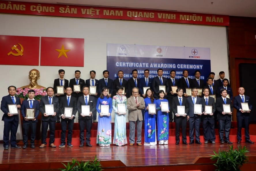 70 kỹ sư chuyên nghiệp ASEAN được vinh danh tại EVN HCMC trong sáng 23-10.
