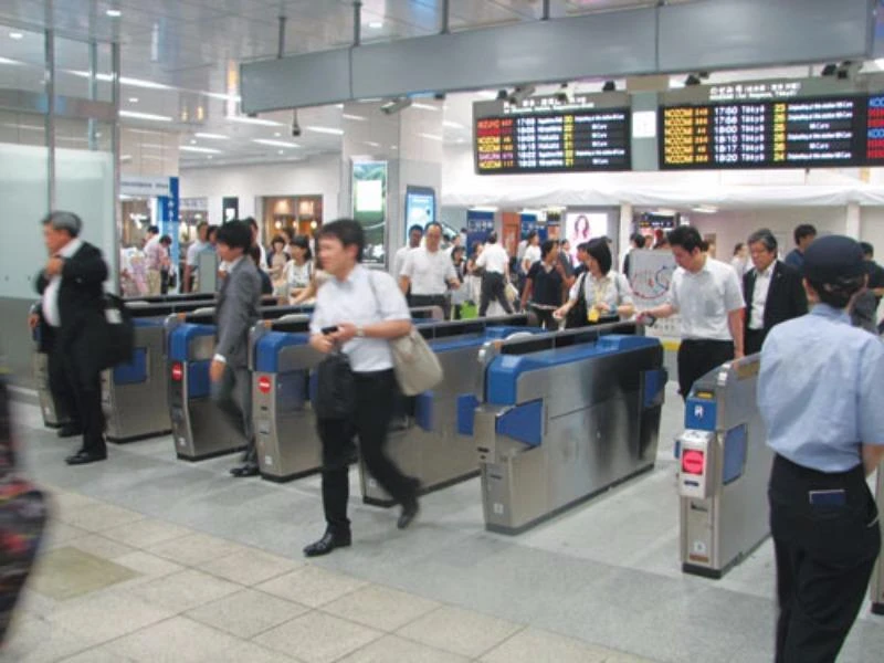 Một cổng kiểm soát vé tự động bằng quét thẻ tại một ga tàu ở Nhật Bản. Ảnh: Internet