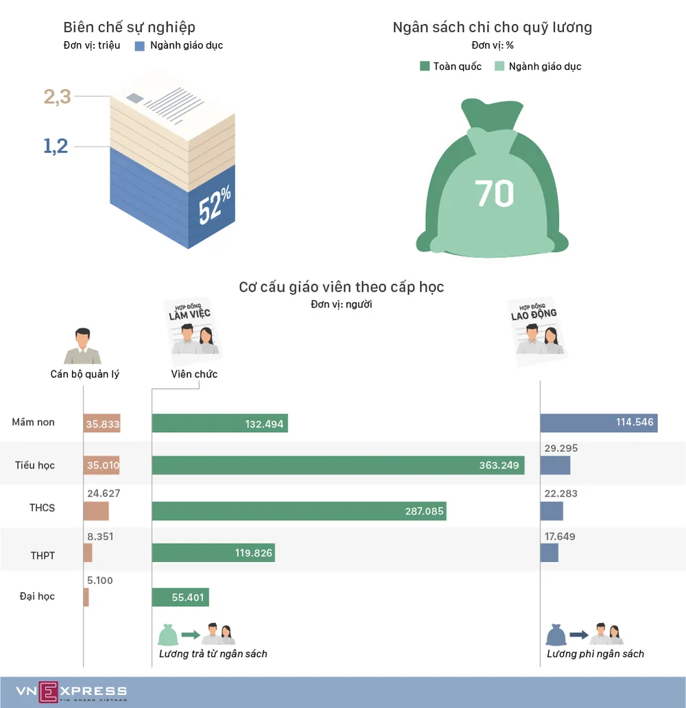 Ngành giáo dục chiếm 70% quỹ lương ngân sách nhà nước