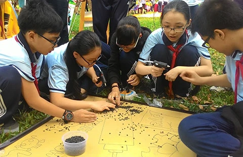 Các em học sinh tham gia các hoạt động vui chơi tại ngày hội. Ảnh: P.ANH