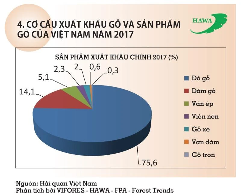 Cơ cấu xuất khẩu gỗ và sản phẩm gỗ của VN năm 2017