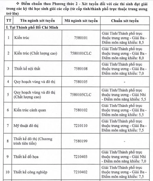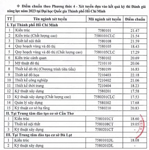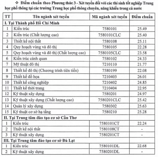 Trường ĐH Kiến trúc TP.HCM cũng vừa có công bố về điểm chuẩn xét tuyển vào các ngành đào tạo ĐH hệ chính quy năm 2023.