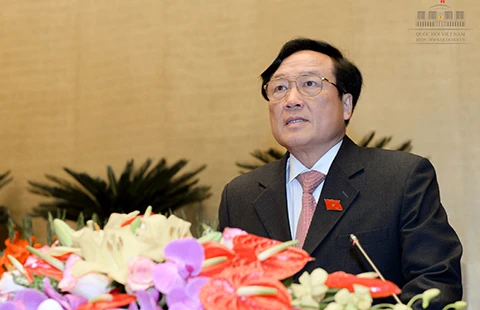 Viện trưởng VKSND Tối cao Nguyễn Hòa Bình đang báo cáo trước Quốc hội. Ảnh: T.PHÚ