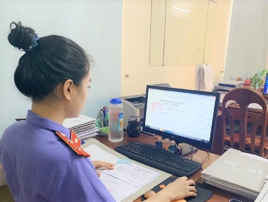 VKSND quận Thanh Khê (Đà Nẵng) tăng cường ứng dụng công nghệ thông tin, số hóa hồ sơ vụ án. Ảnh: LT