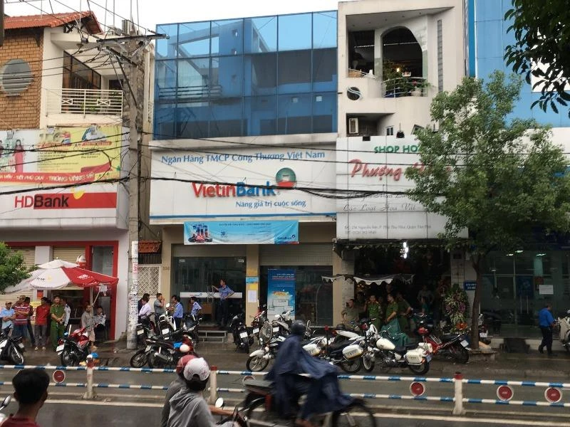 Khi đến trước Ngân hàng Vietinbank Chi nhánh Nguyễn Sơn (phường Phú Thọ Hòa, quận Tân Phú) thì dừng lại. Nam thanh niên ngồi sau mang ba lô tiến vào bên trong, người chở tới thì lập tức rời đi.