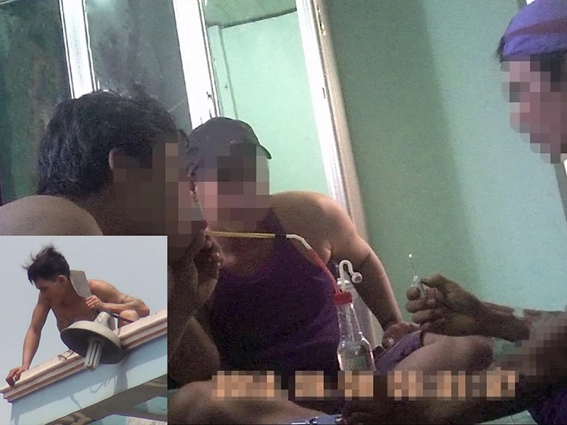 Các thanh niên tập trung trong một căn nhà ở Hóc Môn “đập đá” vào tháng 11-2017. (Ảnh nhỏ: Tháng 5-2016, thanh niên ngáo đá cố thủ trên sân thượng của một căn nhà ở quận Bình Tân) Ảnh: N.TÂN