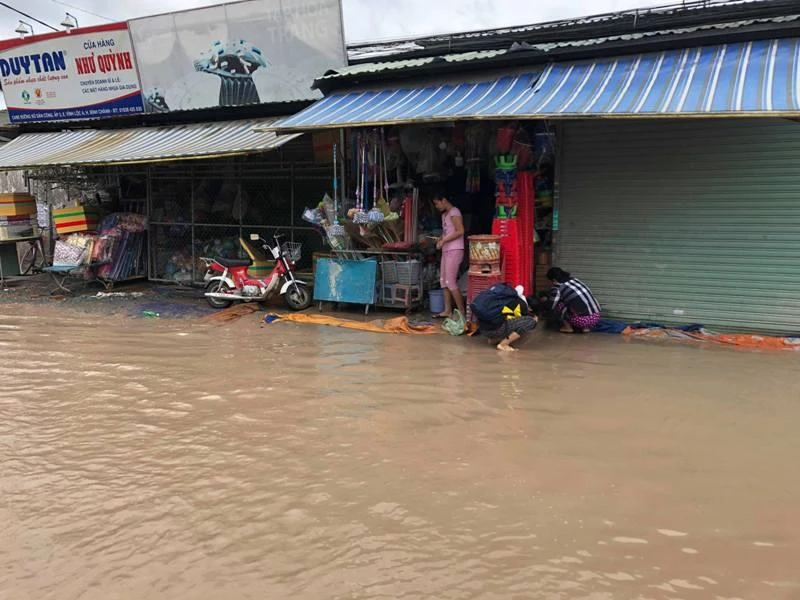 Nhiều hộ phải tát nước khi nước tạt vô nhà.