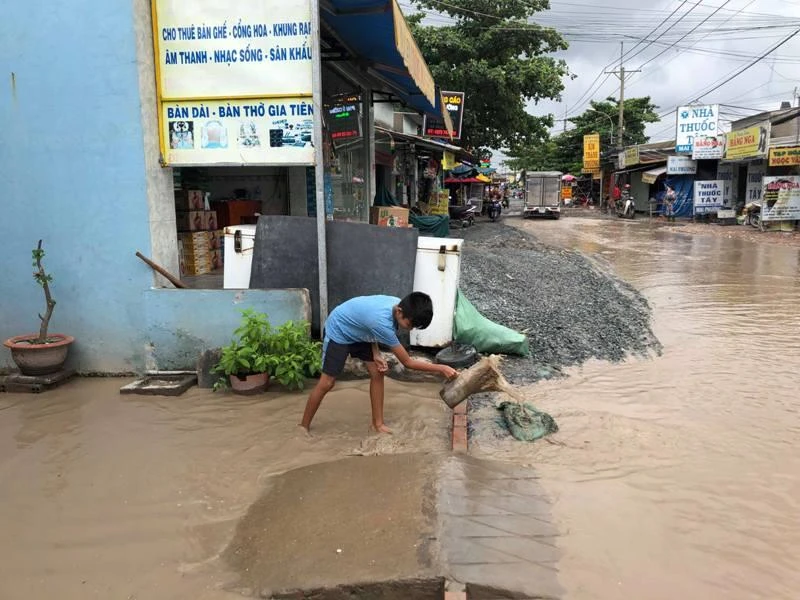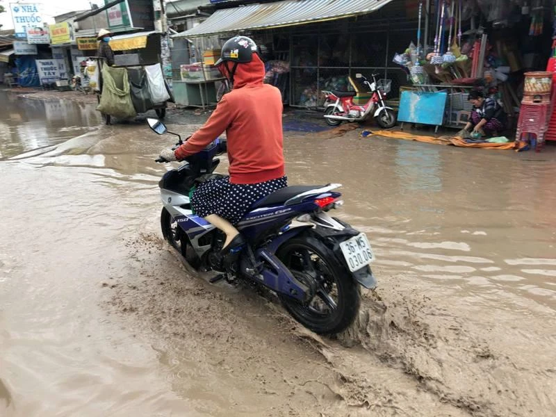 Nhiều đoạn đường từ "hồ bơi" hóa thành sông sau mỗi cơn mưa.
