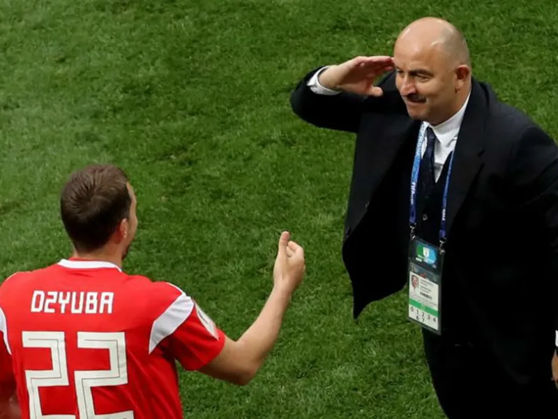 Sau trận thua đậm Uruguay, HLV Cherchesov không còn giữ được vẻ lạc quan và hài hước như trước đó. Ảnh: fifa.com