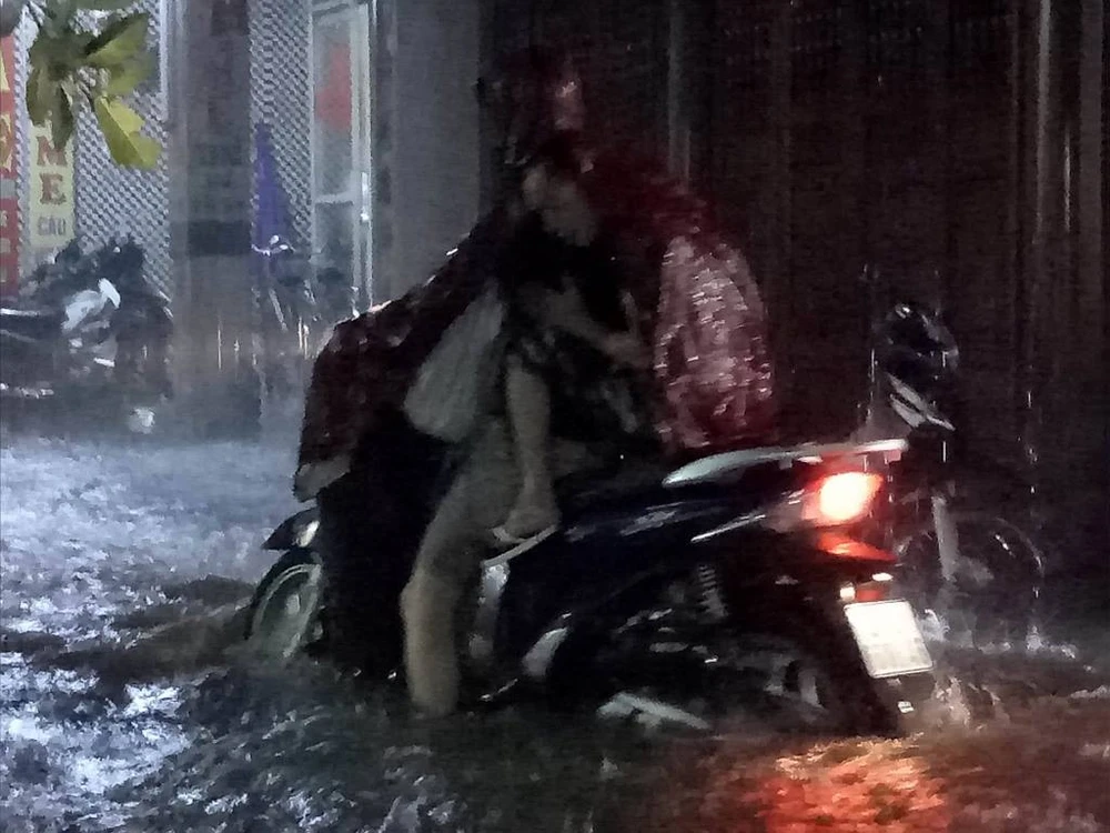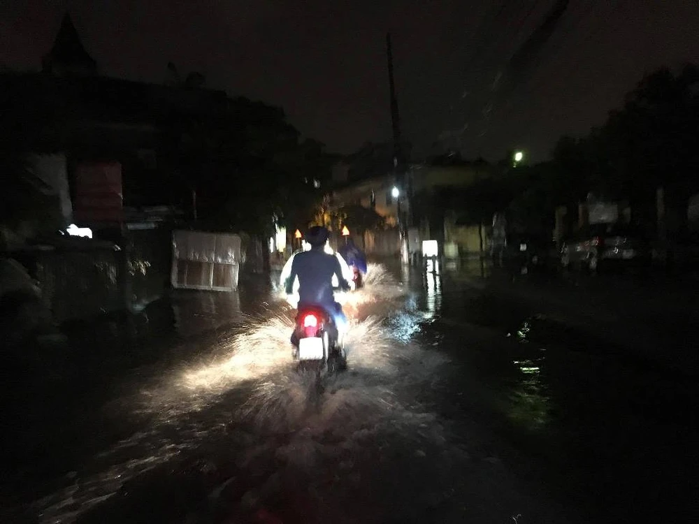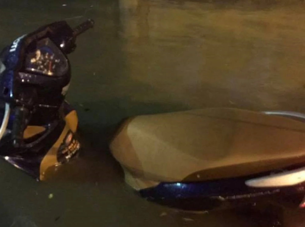 Thậm chí một số khu vực trũng, nước ngập tới cả nửa chiếc xe máy. Ảnh: FB