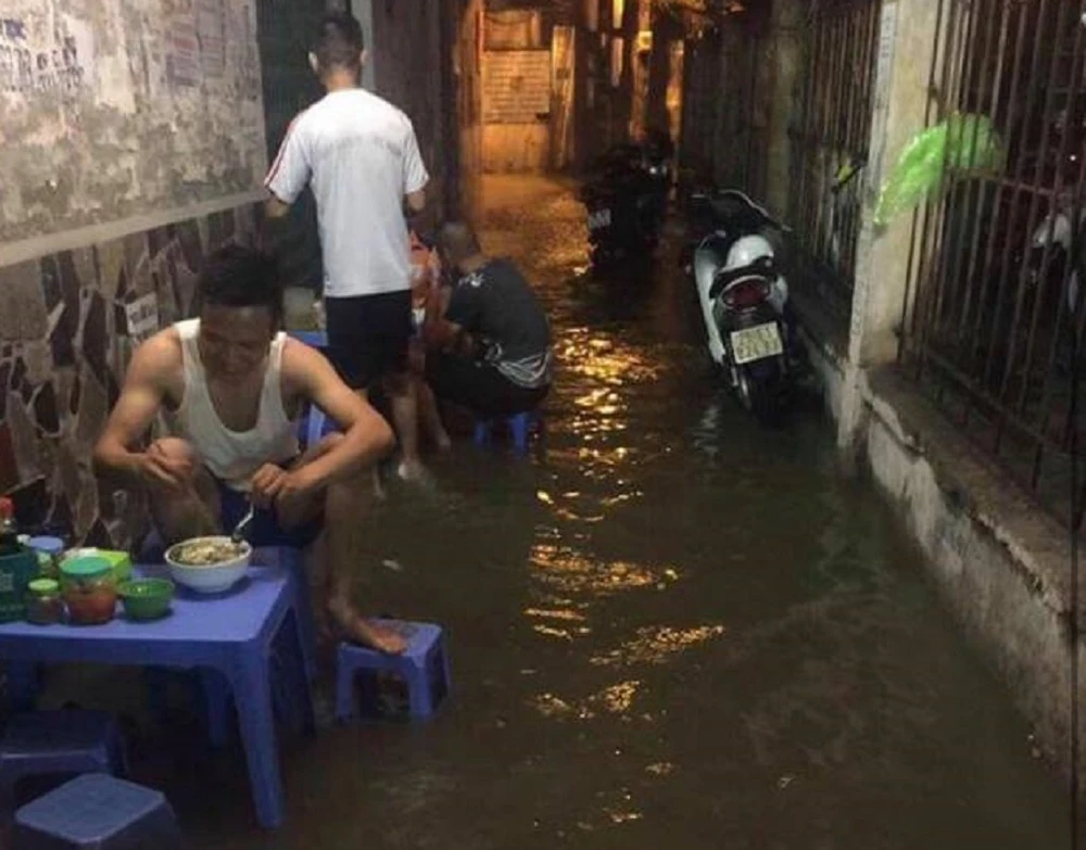 Trong các ngõ nhỏ, nước dâng cao đến ngang đầu gối.
