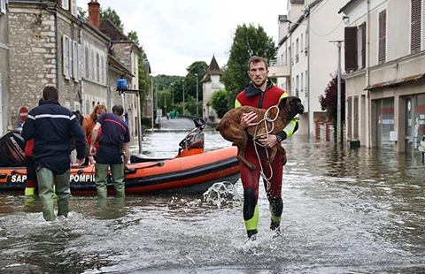 Tại Pháp, 10 tỉnh miền Trung và miền Đông đang đối phó với trận lũ lớn chưa từng thấy. Đến nay có một người chết trong căn nhà bị ngập. Gần 10.000 hộ mất điện ở ba tỉnh Loiret, Seine-et-Marne và Yvelines. Tại tỉnh Loiret, mưa trong ba ngày bằng lượng mưa một tháng rưỡi. Ở tỉnh Seine-et-Marne lân cận, nước lũ dâng ngập thị trấn Souppes-sur-Loing (ảnh).