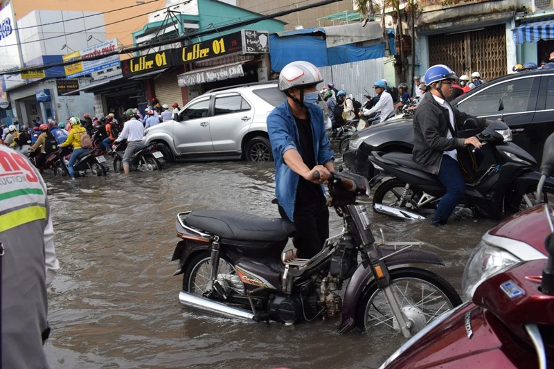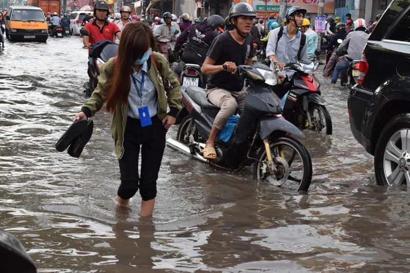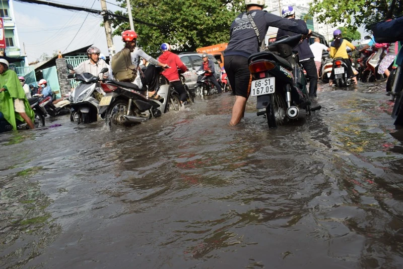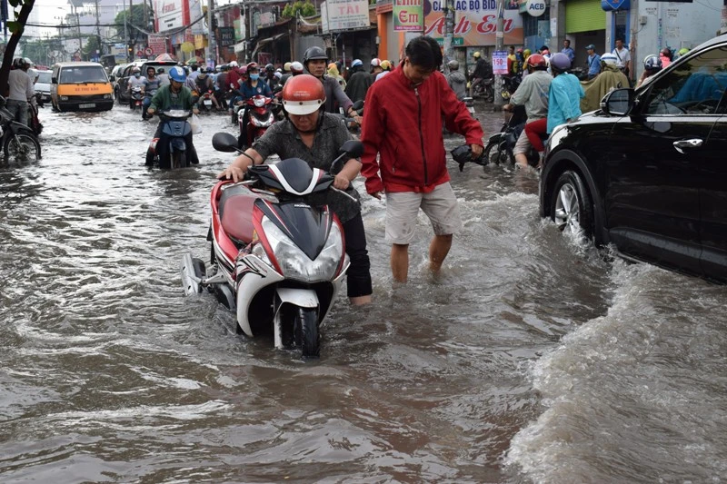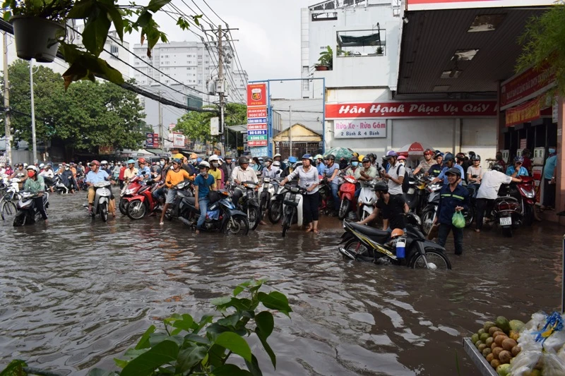 Ở TP.HCM, Nguyễn Xí là một trong những con đường “tử thần” hễ mưa là ngập. Tuy nhiên theo người dân ở đây cho biết mưa đêm mà sáng vẫn ngập nặng đến tận bây giờ thì rất kinh khủng. Người đưa con đi học, người đi làm, vì đoạn đường này đều bị đình trệ.
