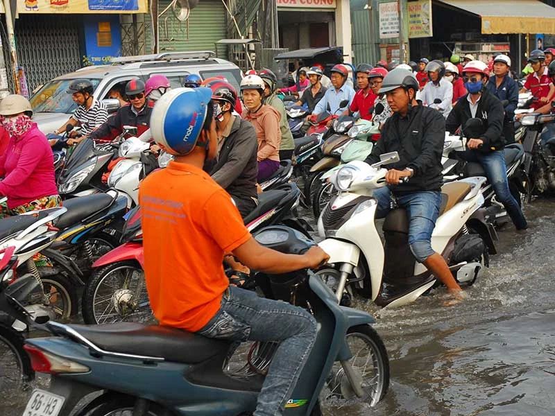 Điển hình tại tuyến đường Phạm Hùng (huyện Bình Chánh), mới 16 giờ 30 triều cường đã bắt đầu dâng cao đến khoảng 60 cm. Những đoạn ngập nặng nhất là những đoạn chưa được nâng cấp mặt đường. Mặc dù dự đoán được sẽ ngập sâu, người dân lưu thông qua tuyến đường này tranh thủ về sớm nhưng cũng không tránh khỏi việc xe bị chết máy.