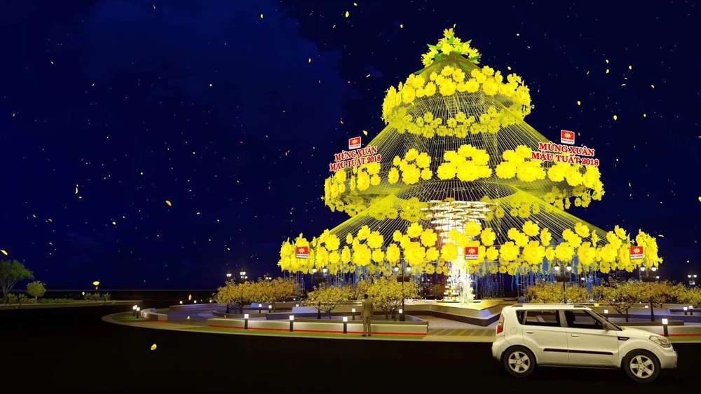 Khu vực trung tâm khu đô thị Phú Cường (vòng xoay Phan Thị Ràng) sẽ lung linh về đêm với hình ảnh hoa mai vàng rực nở.