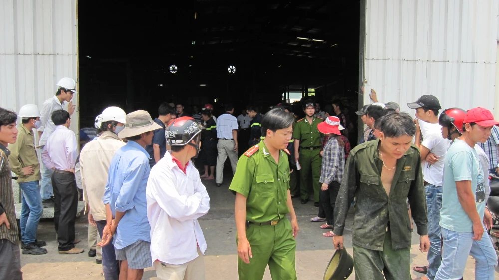 Nhiều công nhân bàng hoàng trước sự việc xảy ra trên. Ảnh: VIẾT LONG